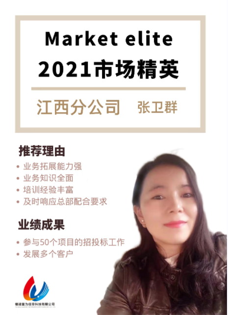 为贯彻落实总公司总体战略目标,,,,进步加强各分公司的业绩目标管理,,,充分调动各分公司经营积极性,,,,提升职员工作质量和工作效率,,,推进各项工作有效开展,,,,激励先进,,特开展2021年量为体系“优秀技术工程师”、、、、“市场精英”评优工作。。。经个人自荐,,分管领导推荐,,,,总部核实考核结果,,,授予江西分公司黄建勇“优秀技术工程师”称号,,,,授予江西分公司张卫群“市场精英”称号,,,,授予湖北分公司鲁卫苹“市场精英”称号。。